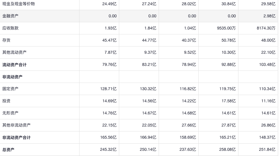公司的现金变化不大,总体是在减少,应收增长了不少,存货为啥这么多,这个公司为啥有存货?存货太多了,固定资产是在增加的,总资产变化不大