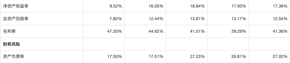 公司的净资产收益率之前是很高的,最近两年是在下降的,利润率是挺高的,负债率真的很低。