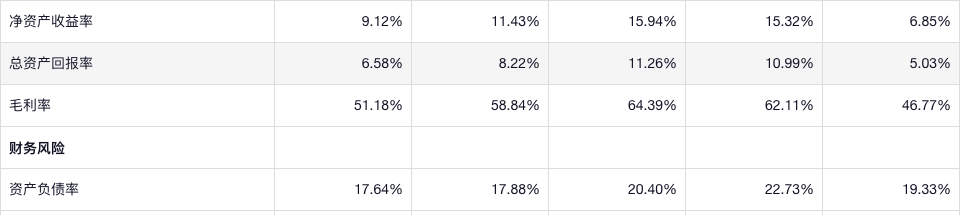 公司的净资产收益率并不低,不过一直在下降,利润率好高呀,负债率好低