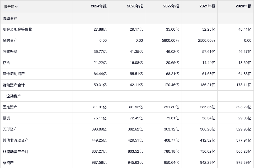 公司的现金是在减少的,应收和存货合计变化不大,固定资产是在减少,无形资产是在增加,每年折旧那么多,但是资产变化并不大