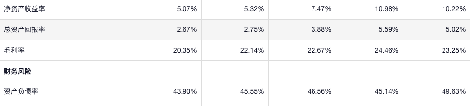 公司的 净资产收益率很低,利润率也不算高,负债率不高