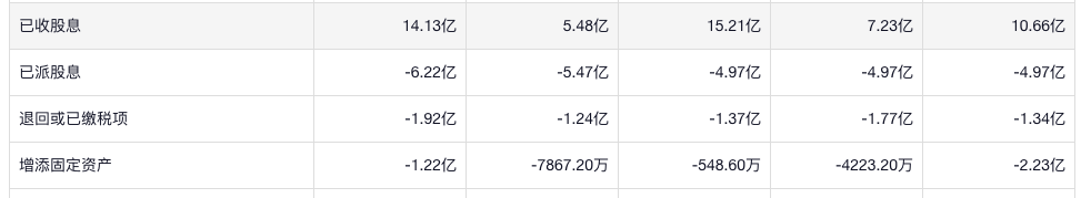 公司每年收到 的股息都有十几个亿,然后每年自己也分红