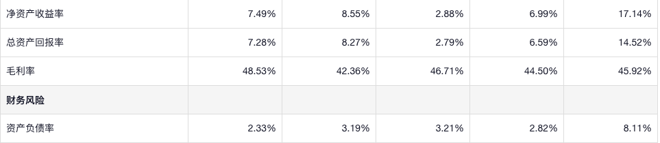 公司的净资产收益率不高,不过都不知道这个指标适合不适合他,利润率不高,资产负债率很低,好像这是我见过最低的