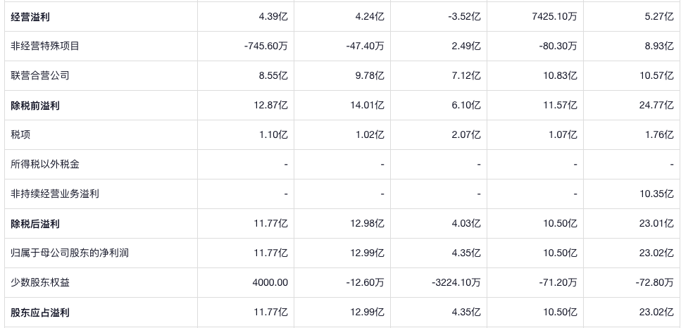 公司的联营合营公司的利润很高,但是算是下降的趋势