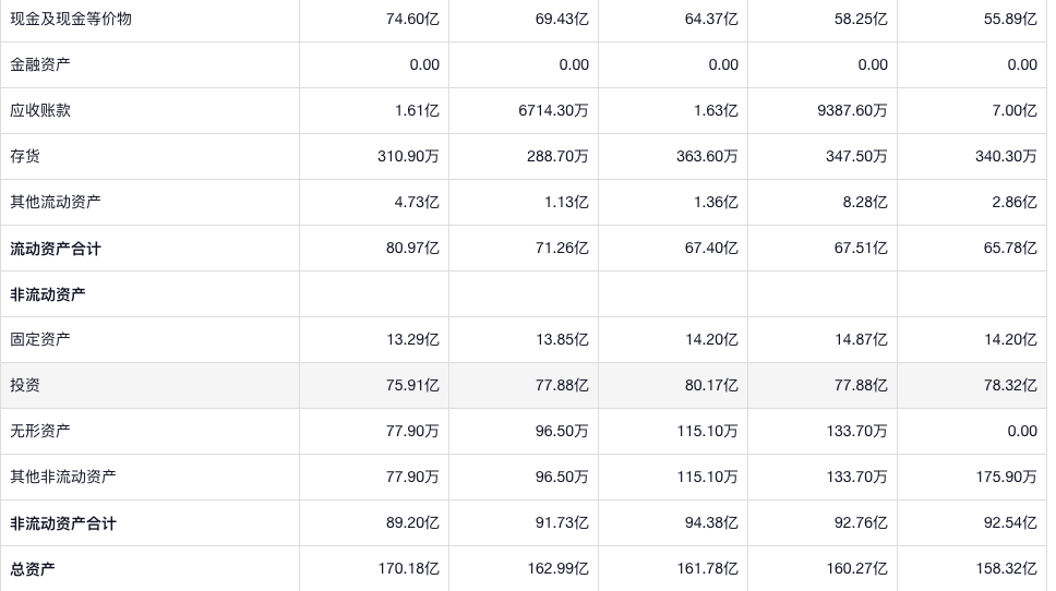 公司的现金是真的多,固定资产不算太多,投资占比很多,