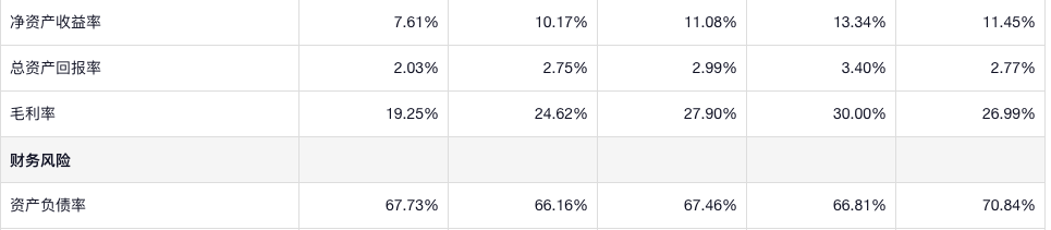 公司的净资产收益率不高,利润率不高,而且是下降的趋势。