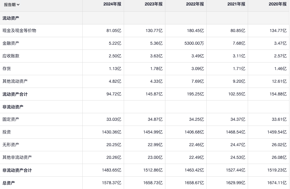 公司的现金并不算很多,主要的资产是投资,所以这是一个母公司?