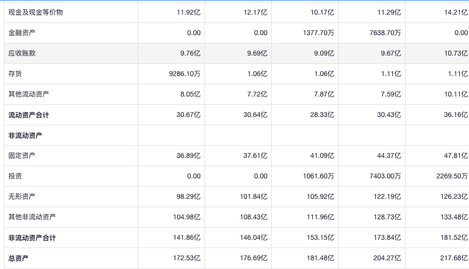 公司的现金不是很多,应收存货不多,固定资产是在减少的,无形资产也在减少,