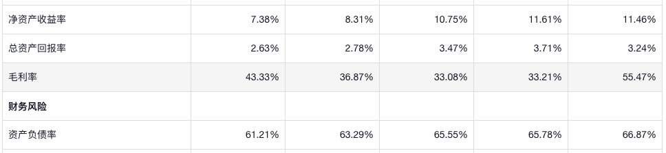 公司的净资产收益率不高,利润率是相对比较高 的,公司的负债率算是略高的