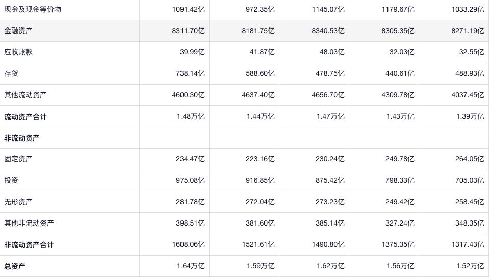 公司的现金是真多,经融资产非常多,固定资产也很多,投资也很多