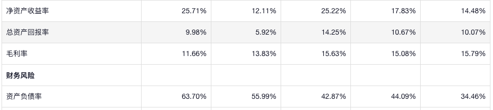 净资产收益率还挺高,利润率是不高,负债率一直在增长,