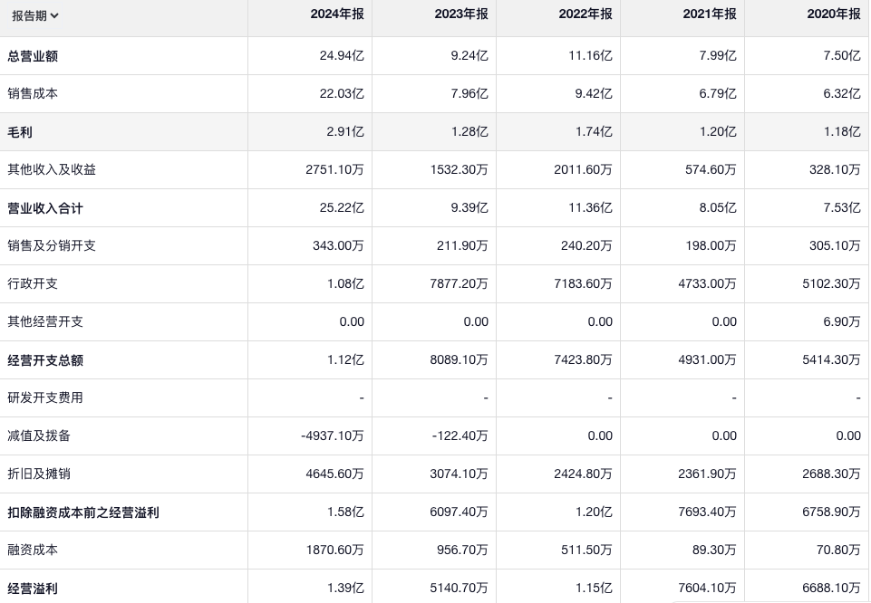 公司的毛利也和收入一样,行政开支一直在增长,销售费用很少,减值大部分时候不多,融资成本一直在增加
