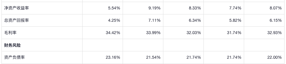 公司的净资产收益率并不是很高,利润率倒是不算低,负债率很低