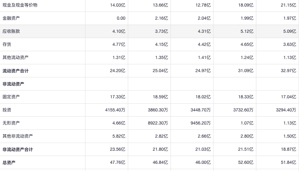 公司的现金整体是减少的,存货应收变化不大,固定资产变化不大,