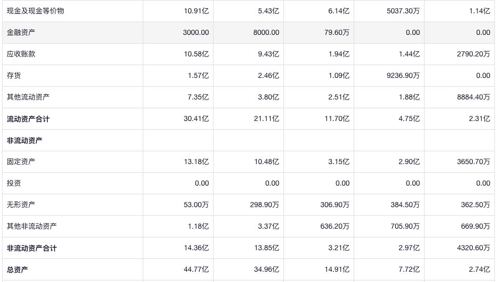 应收也挺多了,存货倒是不算多,固定资产增加很多,