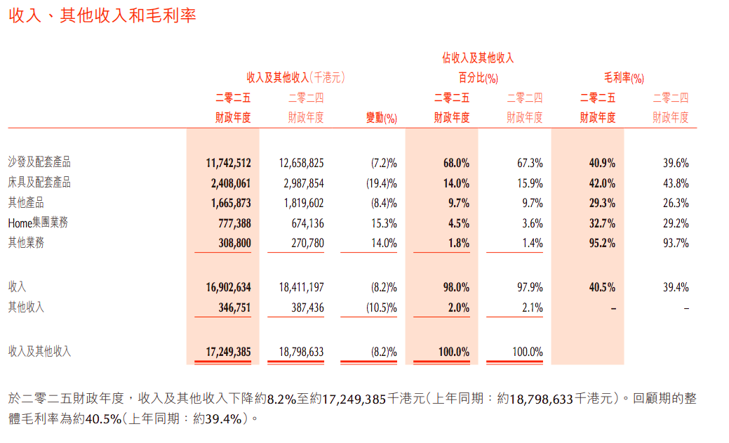 公司的收入主要是沙发