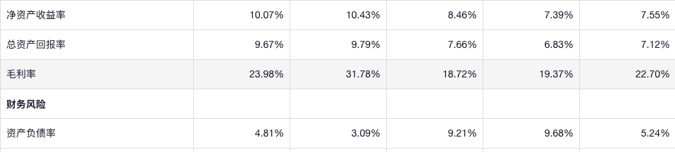 净资产收益率不高,而且也没意义,利润率不高,负债率极低,之前看到一个公司也是这么低的负债率