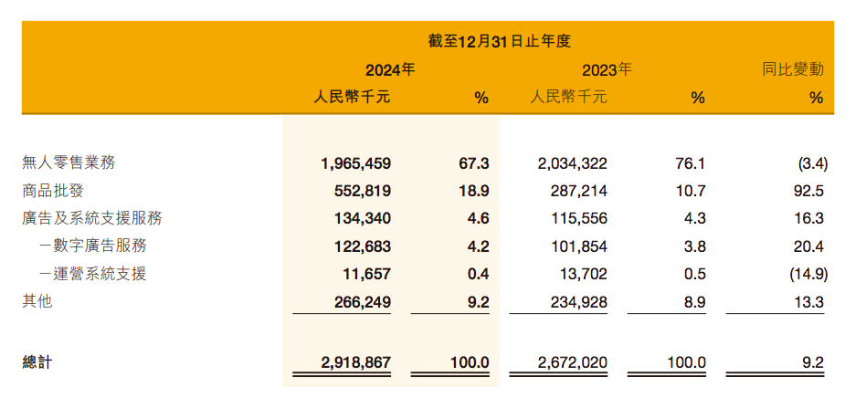 这个公司的收入主要是无人零售业务,但是24年这部分收入是下降