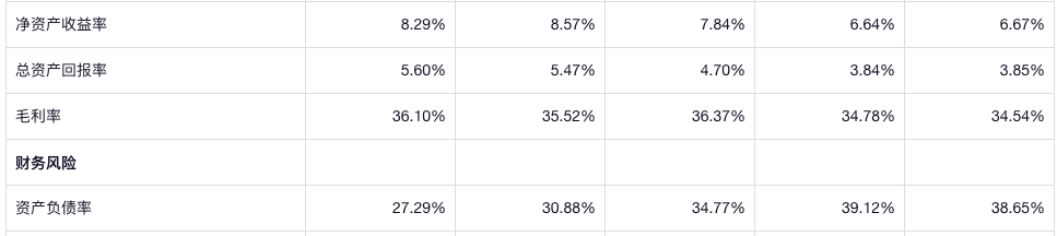 净资产收益率不算高,利润率倒是蛮高的,资产负债率很低。
