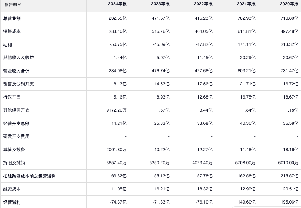 最近四年公司的毛利都是负的,经营开支是减少了很多,公司的融资成本也是在减少的