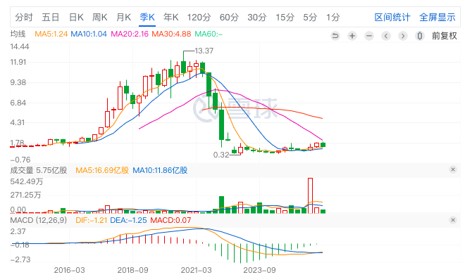 市盈率(动):亏损市盈率(TTM):亏损52周最低:0.72委比:-82.08%市盈率(静):亏损市净率:0.35每股收益:-1.23股息(TTM):--总股本:56.85亿总市值:73.34亿每股净资产:3.23股息率(TTM):--港股股本:56.85亿港股市值:73.34亿
