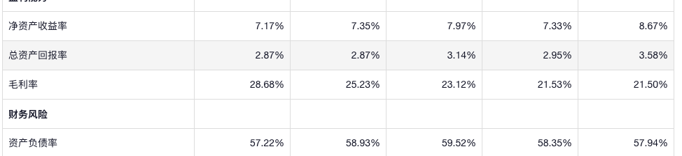 净资产收益率不高,负债率中等。利润率还行