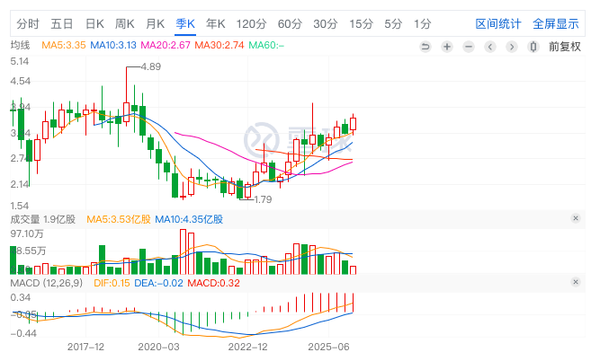 市盈率(动):11.71市盈率(TTM):11.1352周最低:2.71委比:-12.50%市盈率(静):10.77市净率:0.77每股收益:0.33股息(TTM):0.19总股本:105.90亿总市值:389.71亿每股净资产:4.77股息率(TTM):5.27%港股股本:19.69亿港股市值:72.45亿