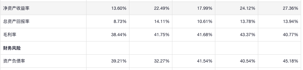 公司的净资产收益率是比较高 的,利润率也比较高,负债率很低