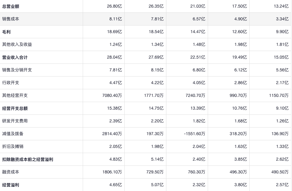 公司的毛利和收入的增长是同步的,经营开支也是稳定增长,公司的运营开支是真的有点大,不到30亿的收入,需要4.5亿的行政费用,感觉有点高,
