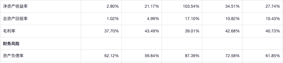 公司的净资产收益率起伏也是巨大,利润率是高的,公司的资产负债率现在还行吧