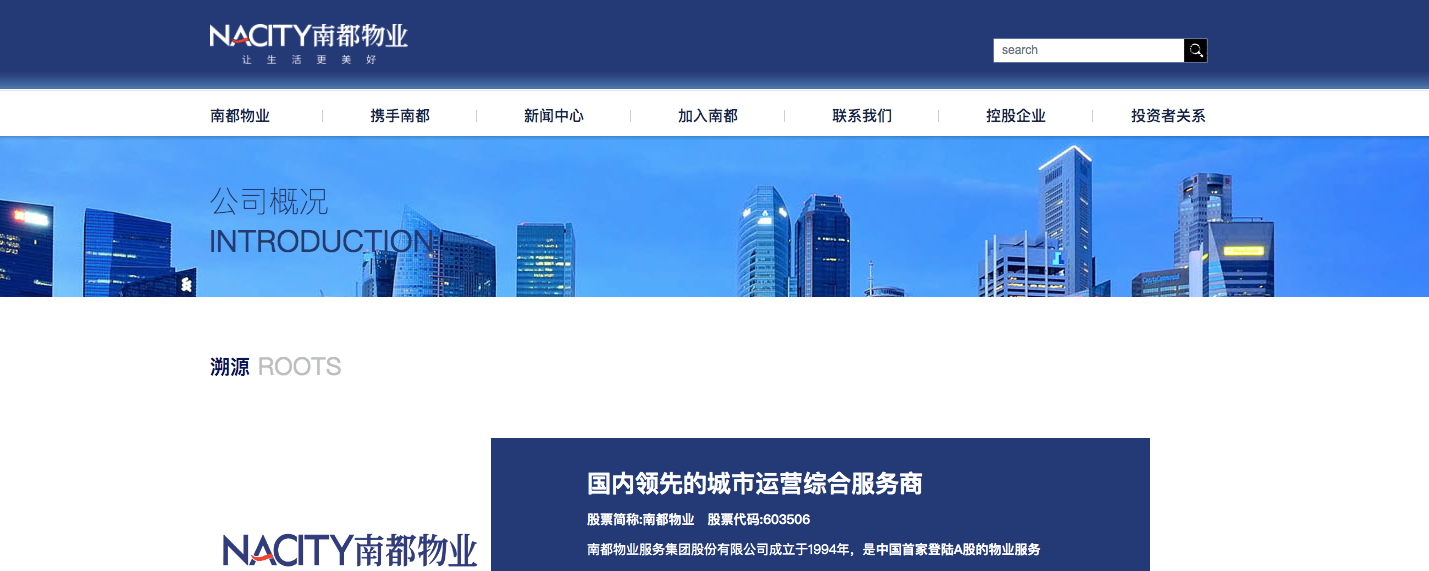 公司成立于 1994 年,是一家市场化运营的物业服务企业,现为中国物业管理协会副会长单 位、浙江省物业管理协会会长单位。公司一直以来以“创百年卓越服务企业”为愿景,秉承以“客 户第一”为核心的“七色花”价值观和“人文服务、智慧管理”服务理念,以物业管理服务为基 础,基于未来空间功能复合的发展趋势,建立覆盖全生命周期的服务质量管理体系,主张以科技 手段和工具应用创新,实现服务管理的数字化、智慧化;坚持以人为本,为客户提供全业态、全 场景、全生命周期服务,致力于向国内领先的城市运营综合服务商转型升级。