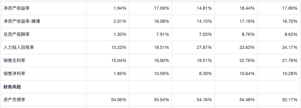 公司的净资产收益率还是很高的,利润率还可以,但是毛利率一直在下降。负债率没啥变化