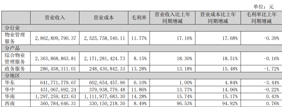 公司以综合物业管理服务为核心业务,专注于为客户提供专业、高端、定制化的后勤保障服务,通过不断深化客户需求、作业场景及服务标准的研究,满足客户全周期的服务需求管理。报告期内,公司已形成以综合物业管理服务为核心,政务服务及增值服务协同并进的多元化经营模式。