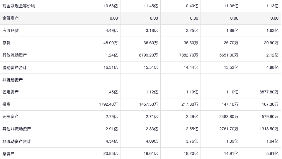 公司的现金没啥变化,应收增长速度和收入差不多,这点还挺好,固定资产不多。