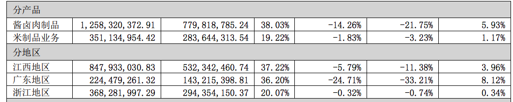 公司目前主营业务包括酱卤肉制品加工业务和米制品业务,主要有“煌上煌”“真真老老”和“独椒戏”等三大品 牌。