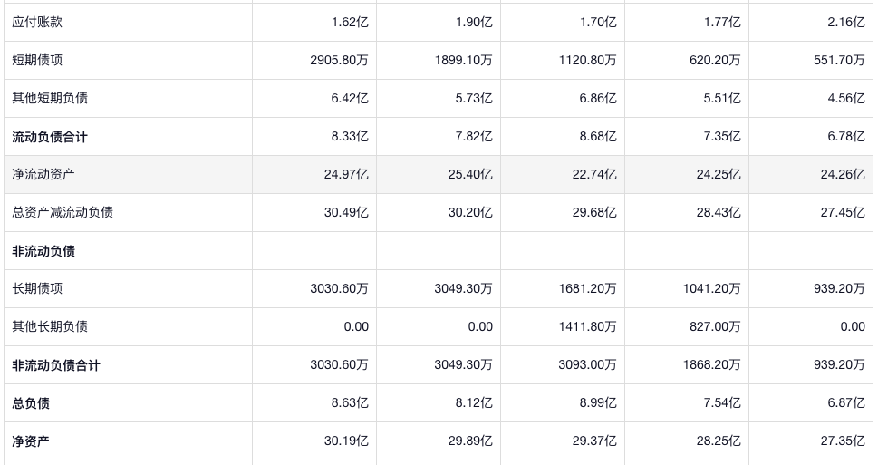 公司的负债很少。