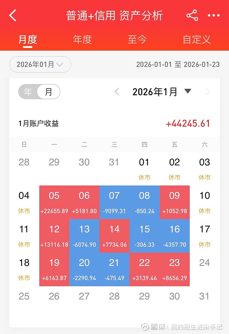 一、主账户:本周浮盈1.52万,26年1月浮盈4.42万元,23年至今 时间加权收益率122.21%,盈利37.8万元;东财小账户:26年浮盈0.41万元。
