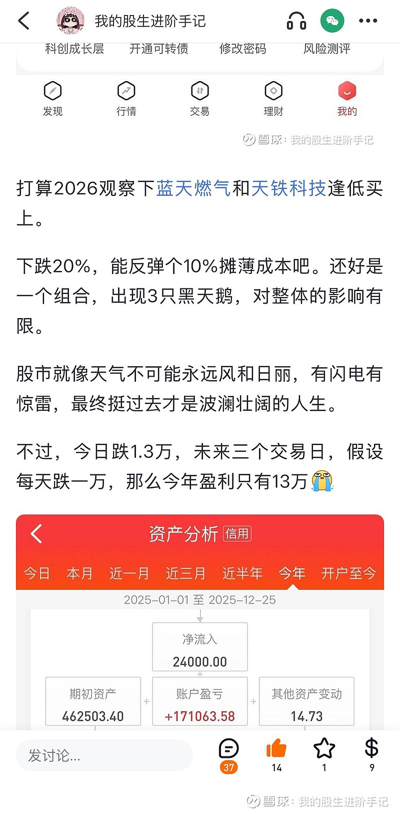 1.$蓝天燃气(SH605368)$ 和$天铁科技(SZ300587)$ 两位难兄难弟,在25年12月暴雷后,