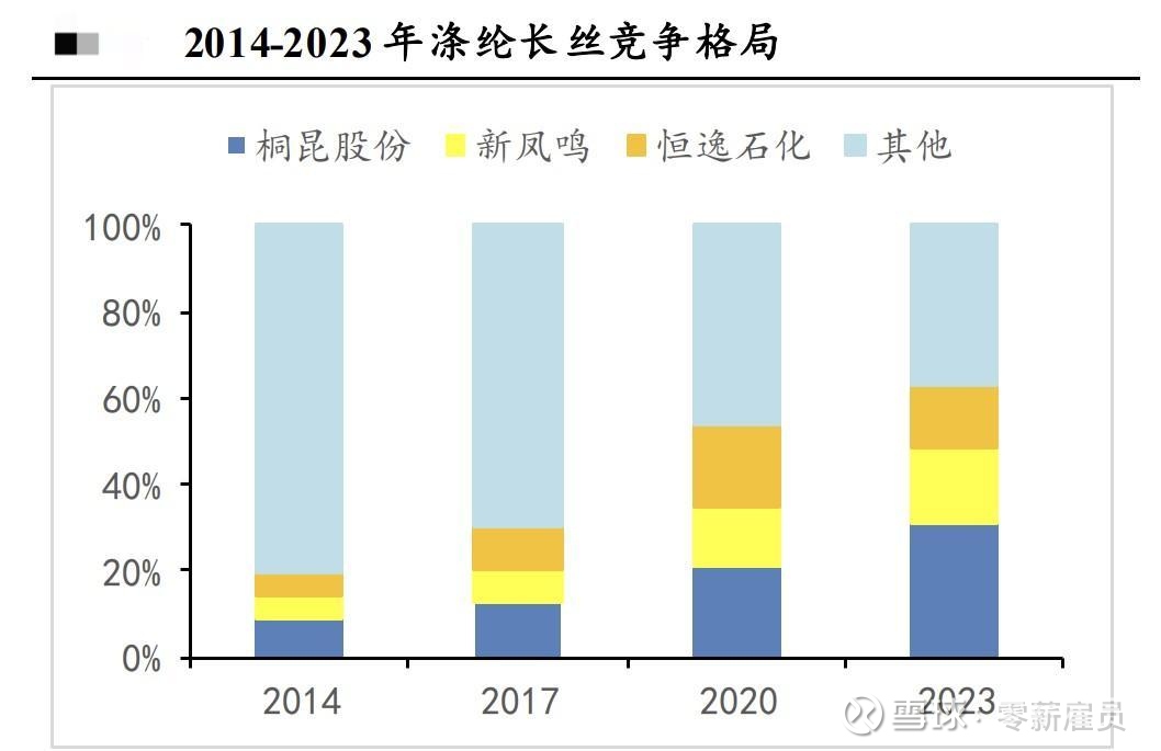 国内聚酯涤纶行业经过 30 多年的迅猛发展,技术、工艺已趋成熟,产业水平和规模已领先全球。回顾聚酯涤纶过去 30 多年的发展历程,行业经历了三个发展阶段,20 世纪90 年代,沿海地区民营资本进入化纤行业,国民需求的快速增长推动了聚酯涤纶市场的发展壮大。但上游原材料 PX 和 PTA 基本掌握在日韩手中,产业链利润大部分被上游拿走。2011 年开始,国内 PTA 技术日渐成熟,叠加棉花价格大幅上涨同时带动了涤纶需求的增长,民营企业开始加大资本开支投资 PTA 产能,国内 PTA 的自给率快速上升,但随着供应的大幅增加,PTA 环节的利润被压缩。2015 年政策放开石油炼化市场,化纤产业链上的民企开始向上游延伸,一方面为了完善 PX-PTA-PET 整条产业链,另一方面也希望能分享到炼化行业的政策红利,国内进入炼化产能和 PX 产能建设高峰期。随着 2019年恒力石化和浙江石化陆续投产,行业进入产业链一体化阶段。现阶段,产业链龙头企业已完成一体化布局,重要原材料基本可以实现自给自足。产业链的发展从向上延伸转变为向下延伸,各大龙头企业在各自细分赛道上抢占市场。而聚酯涤纶环节已率先完成市场集中度的提升,绝大部分市场掌握在 3-4 家头部企业手中。龙头企业已经完善自身产业链供需结构,与中小涤纶企业的差距被进一步拉大。在强者恒强的铁律之下,中小涤纶长丝企业想实现对龙头企业的追赶已经非常困难。