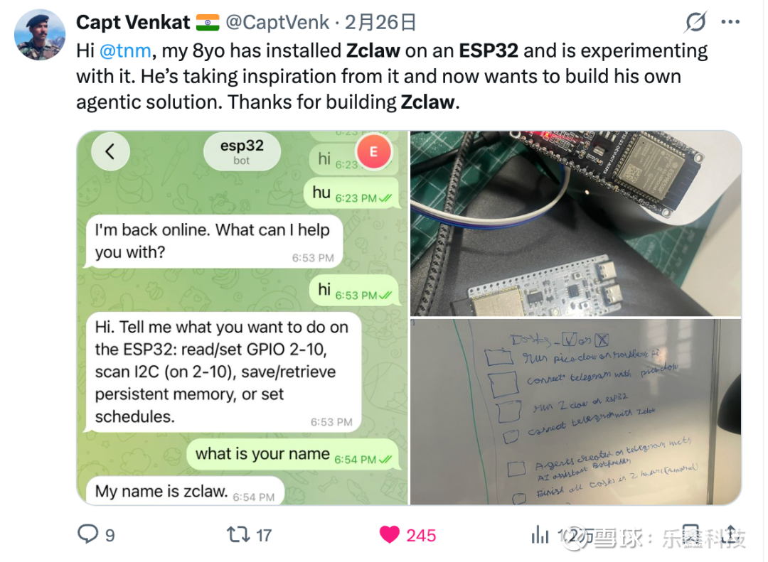 OpenClaw 大火之后,开发者社群开始尝试将各种版本的某某 Claw 运行在嵌入式硬件之上。 无需 Mac Mini,一个树莓派,一个 ESP32 开发板,都可以进行尝试。