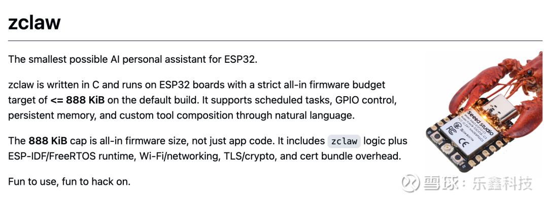 两周前,我们介绍了 MimiClaw。近期,开源项目 zclaw 在全球开发者社区又受到广泛关注。开发者将具备任务管理、长期记忆与设备控制能力的 AI Assistant 部署在 ESP32 平台上,系统占用仅 888KB,却能够持续运行并与现实设备交互。AI 正在给嵌入式硬件带来新的范式变化。