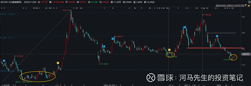 ,今天这根线立住了,只能算是构筑底部区域的第一步,突破125之后站稳才算是真正岛状反转的形态。本来以为这次岛底要构筑长一点时间,难道又像上次那样就几个交易日?