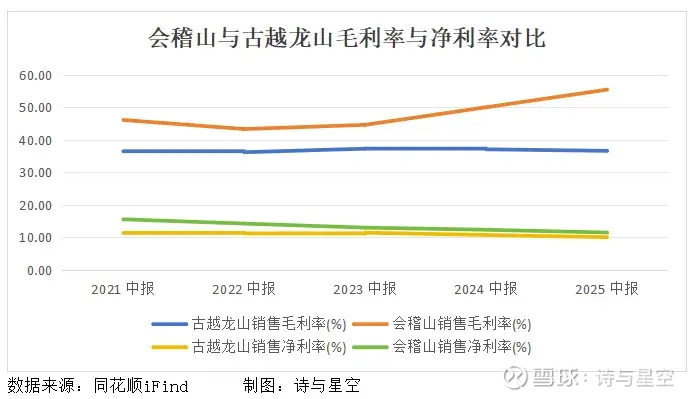 净利率方面,会稽山一直以来略微领先古越龙山,很大程度上也是因为毛利率占了上风。