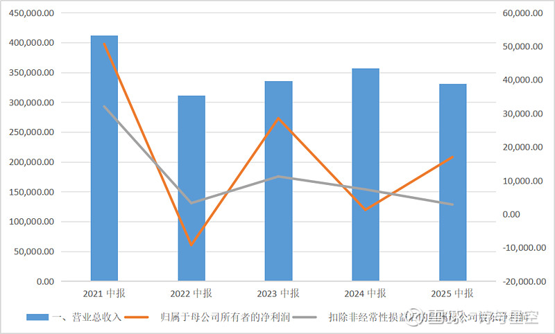2025年上半年,公司实现营业收入33.10亿元,同比下降7.21% 12 。值得注意的是,公司净利润与扣非净利润变动呈现巨大差异:归属于上市公司股东的净利润为1.70亿元,同比大幅增长1287.12%;而扣除非经常性损益的净利润仅为2815.52万元,同比下降61.54%。