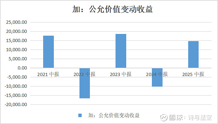 2021年半年报中,公司利润表中的公允价值变动收益1.76亿,到了2022年半年报,公允价值变动收益变成了-1.66亿,少了3个多亿,2025年又成了1.46亿,变来变去对公司的业绩造成较大影响。