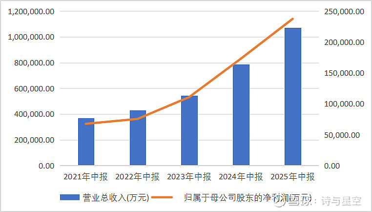 2025年上半年归母净利润达到23.75亿元,与去年同期的17.31亿元相比,大幅增长了37.22%。
