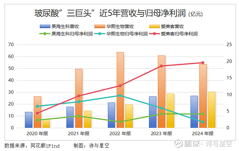 目前我国玻尿酸行业由华熙生物[688363.SH]、爱美客[300896.SZ]、昊海生科[688366.SH]三大巨头主导,但近年来面临重组胶原蛋白等新成分的冲击,整体业绩承压。