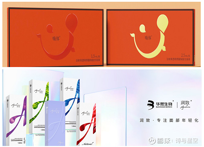 其中医美类产品主要有“润百颜”和“润致”两个品牌,涵盖皮肤护理到分层抗衰等多应用场景;医药类包括眼科黏弹剂、医用润滑剂等医疗器械产品,以及骨关节腔注射针剂等药品。