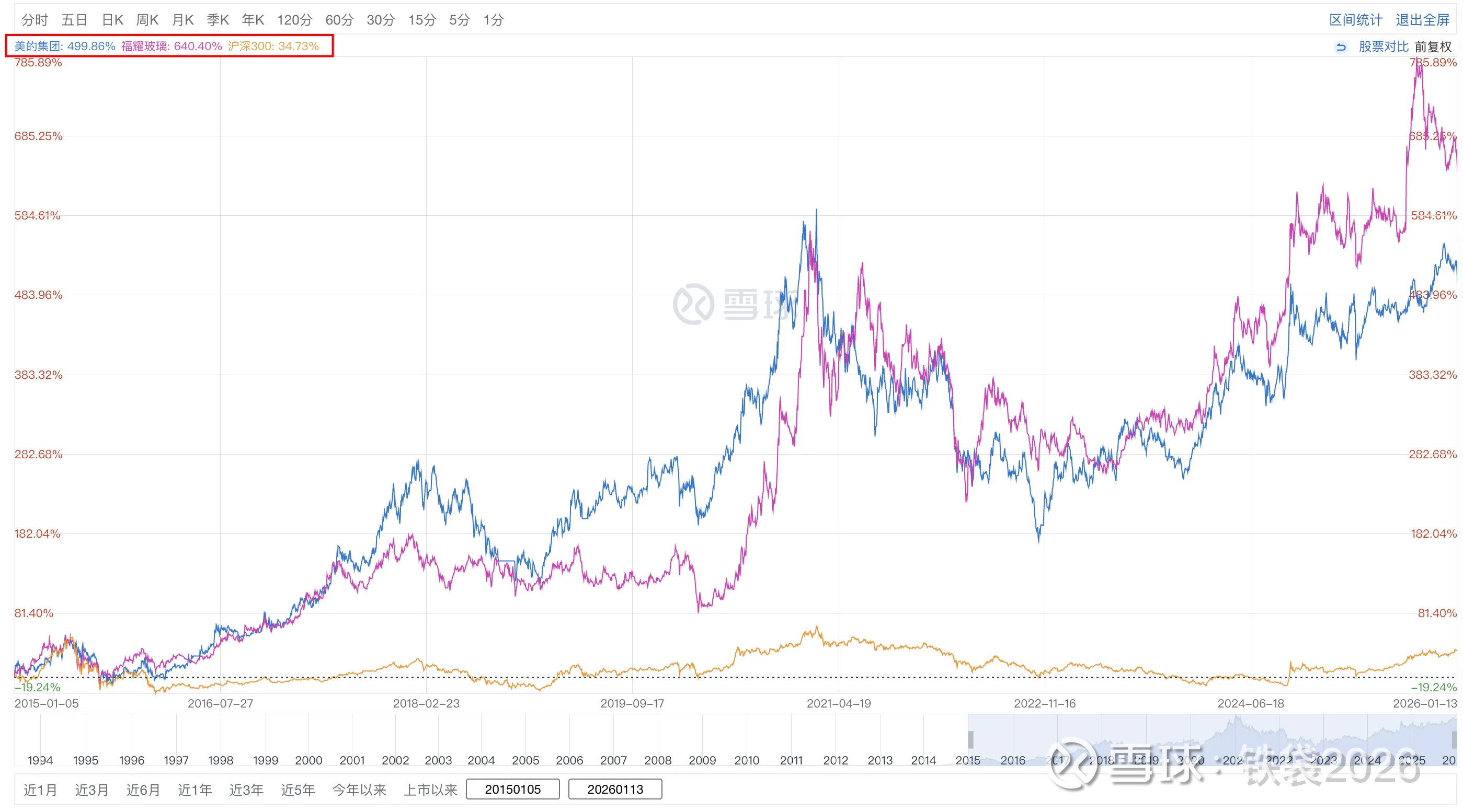 2015年初至今,美的集团翻了5倍,福耀玻璃翻了6倍,沪深300涨幅仅有34.73%