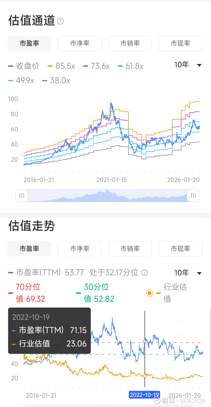 评价: 虽然53倍PE在绝对值上不算低,但相较于其历史中枢(中位值在52.82分位以上,高点曾达100x)来看,目前的估值处于 “合理偏低” 的区间。考虑到业绩已反转进入上升通道,这属于典型的“业绩推着股价走”阶段。